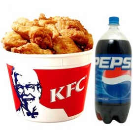 Enjoy a bucket loaded to the brim with  12pcs delicious, juicy and tender original soft juicy chicken made with Col Sanders secret recipe of a blend of 11 herbs and spices with 2 liters pepsi. You also can choose regular fries from add-ons.
