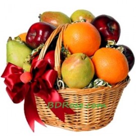 1 kg Grapes, 1 kg Apples, 1 kg Malta, 12pcs Banana, 1 piece Bedana (Large size) with Cookies and Chocolates in a lovely basket arrangement. Basket may vary.