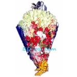 Red roses, Rajonigondha & Gladiolus mixed in a bouquet.
