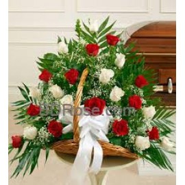 Send these flowers basket to brighten up someone's day as fresh, vibrant and colourful. This bunch of 24 red & white color Roses. Gift these flowers of the season which are neatly, and make somebody happy today.(basket may vary)..