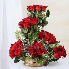 Spread boundless love everywhere with this beautiful bunch of gleaming 24 red roses in a basket. It is a symbol of pure love, care and affection. This is ideal for showing your special ones how much you love them. The 24 red roses basket are bunched more beautifully. ( basket may vary)  ..