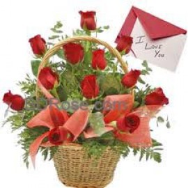 A true representation of passion, this flower basket expresses your feelings in a way that words, and is sure to make that special person in your life feel appreciated, cared for, and above all- loved. ( 12 Flower ) Stems of Red Roses with basket. ..