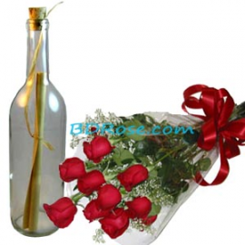 Send your valuable message in a bottle with 12pcs red roses in a bouquet. An authentic message in a bottle is the best way to tell that special someone how much they mean to you. If you are looking for a unique, meaningful and inspiring gift then a message in a bottle is just the right thing for you. Let us help you give your loved one a gift they ..