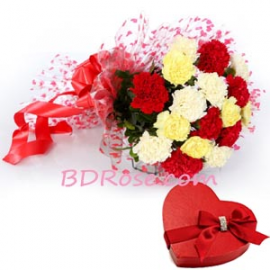 12pcs multicolor carnations bouquet with 2oog imported heart shape eclairs chocolate box...