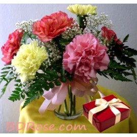 These fresh and glorious flowers are assembled from the preferred floral farms especially for you, so why are you waiting now! Just order it from BDRose for your loved-one to wish on valentines day, birthday, anniversary all other occasions in Bangladesh. This gift consist of imported 12 pink Carnations in a vase...